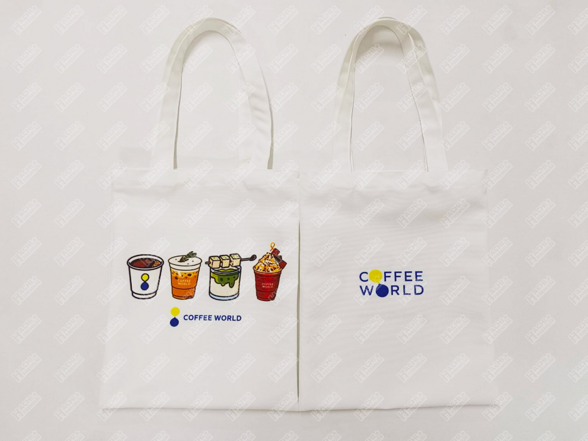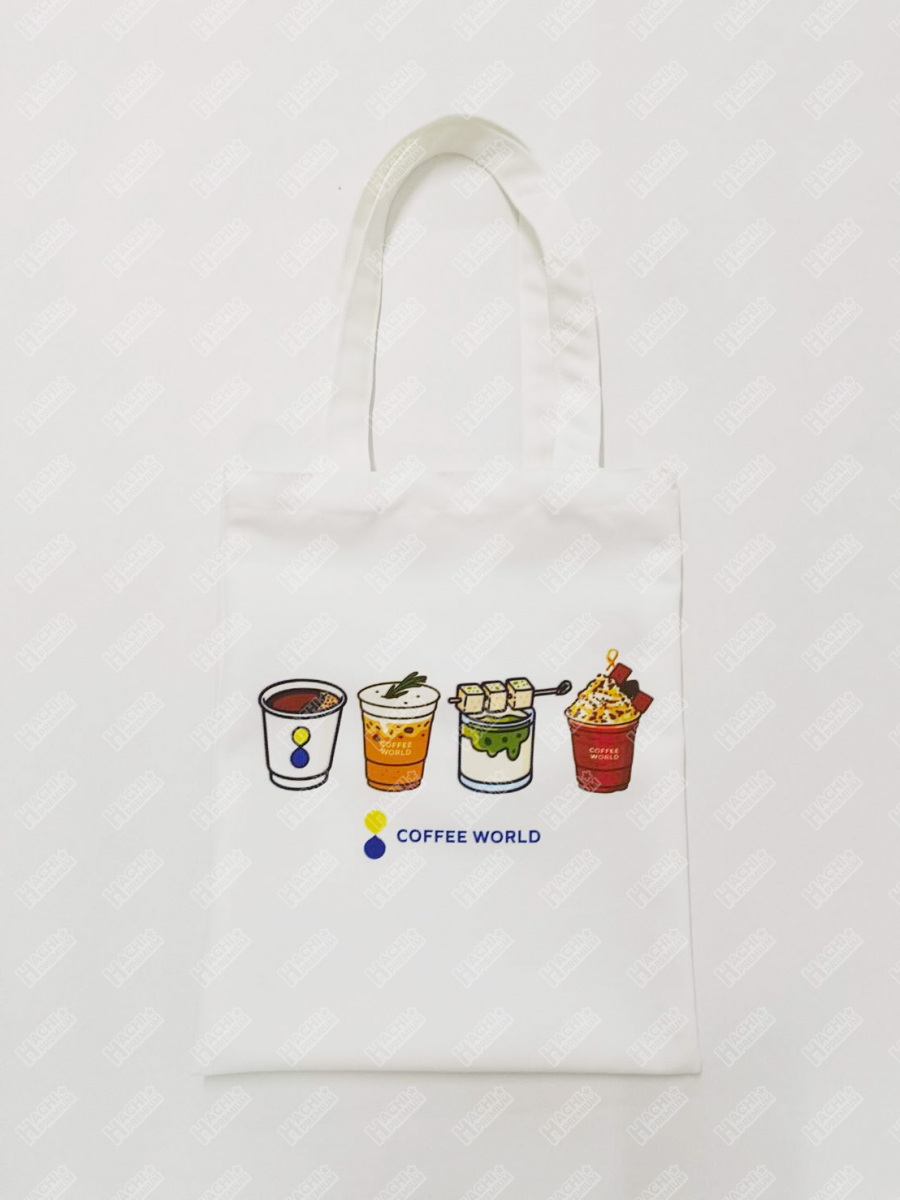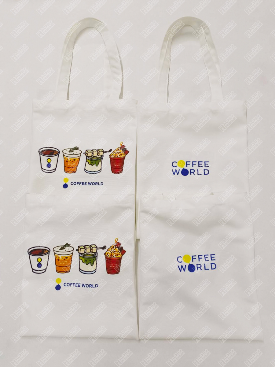 ผลงานสินค้าพรีเมี่ยม - กระเป๋าผ้า Canva coffee world
