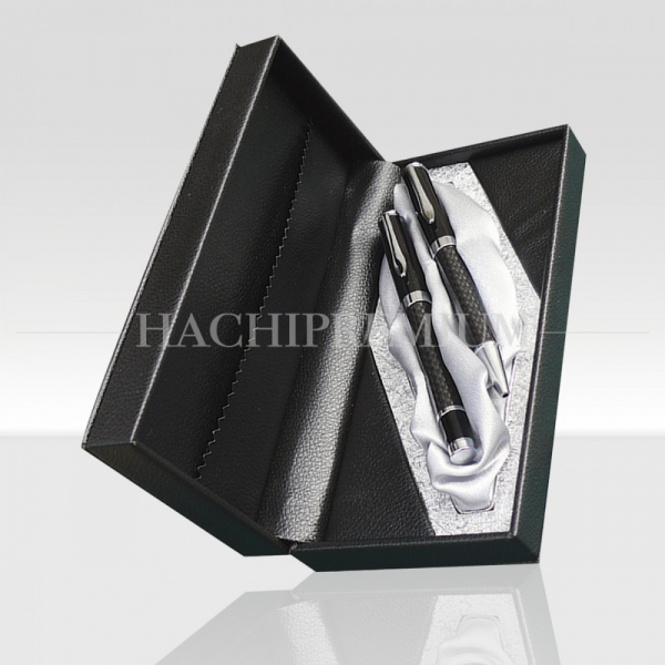 ลักษณะ : ชุดปากกาโลหะ หมึกลูกลื่น สีน้ำเงิน แบบหมุน และ หมึกซึม สีน้ำเงิน ตัวด้ามสีดำเงามีลายครึ่งหนึ่งของตัวด้ามทั้งหมด ตัดขอบคลิปเงินเงา บรรจุใส่กล่อง กล่องหนังสีดำขนาดใหญ่ฝาเปิดแบบบานพับ มีตัวล็อคปากกาเป็นขายื่นขึ้นมาพร้อมรองด้วยผ้าซาตินเพิ่มความหรูหรา ฝากล่องด้านบน มีช่องใส่ของเพิ่มเติม