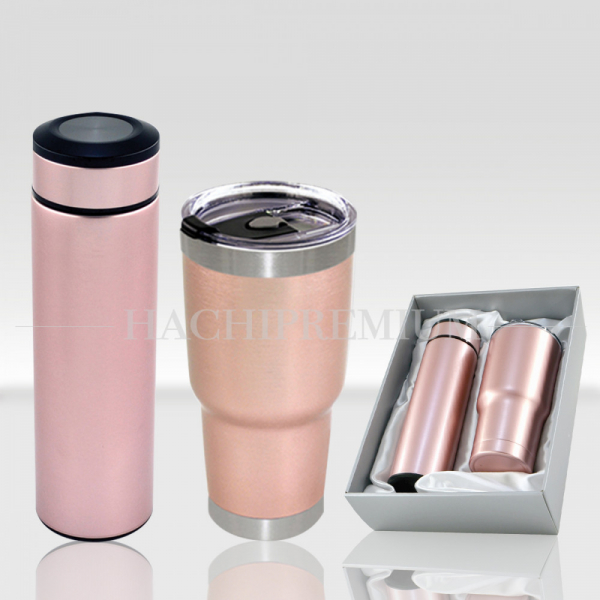 ชุดกระบอกน้ำสแตนเลส รุ่น HCSL-055 สีพิ้งค์โกลด์ (Pink Gold)