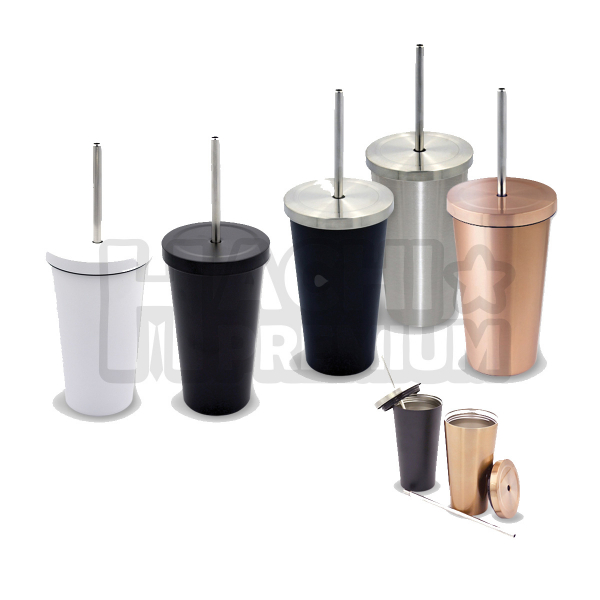 วัสดุ : กระบอกน้ำสแตนเลส สไตล์เรียบหรูดูแพง ฝาหมุนเปิดแบบเกลียว พร้อมหลอดสแตนเลส 24 cm.