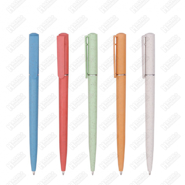 ลักษณะ : ปากกาลูกลื่น เปิด-ปิด แบบหมุน หมึกน้ำเงิน หัว 0.7 มิล ตัวด้ามเป็นพลาสติกมีส่วนผสมจากฟางข้าวสาลี